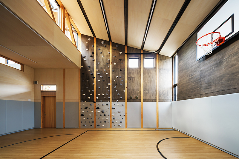 限られたスペースを有効利用、屋根の構造材を利用してカウンターや収納を造作。