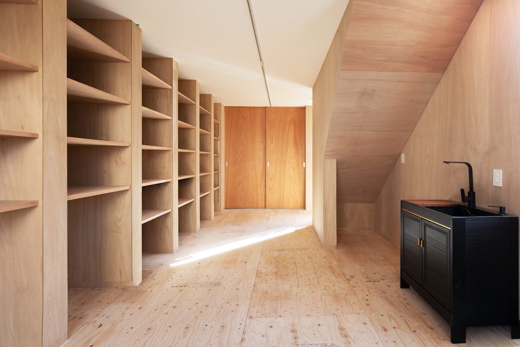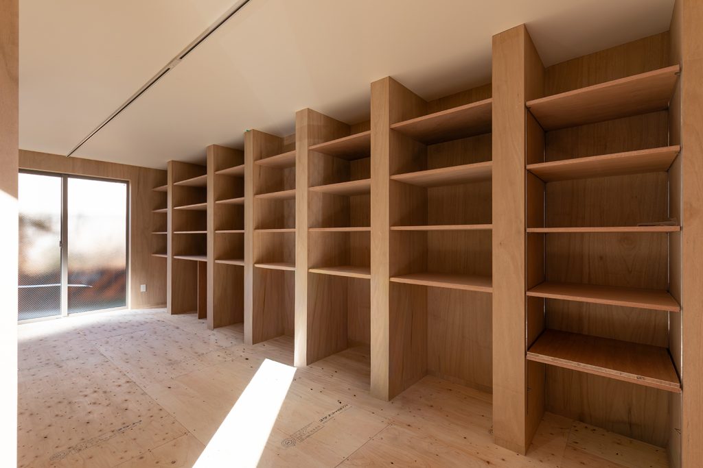 たくさんの棚には、画材道具や書籍、靴なども収納される予定です。