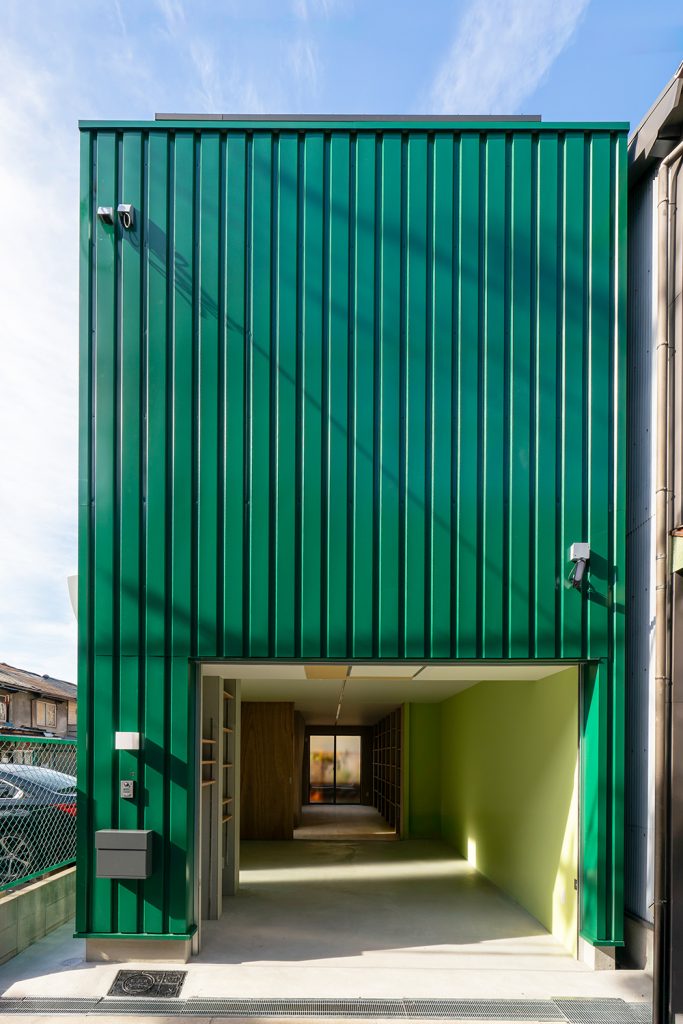 印象的なグリーン色が目を惹く、個性的な外観。