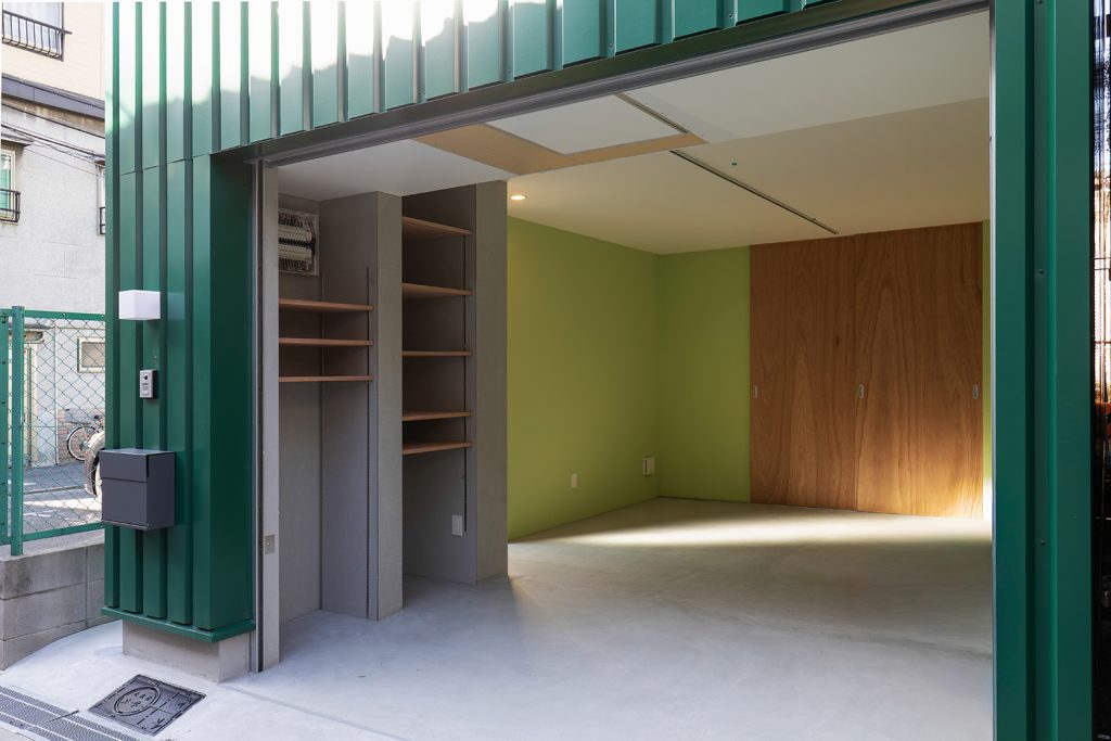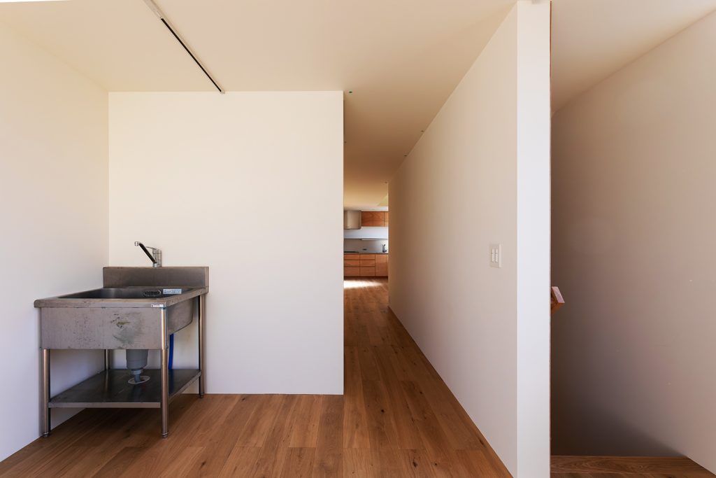 芸術家のお施主様、駐車スペースは将来的にはアトリエとしても使えるように計画。個展を開くギャラリーとしても、利用できそうです。